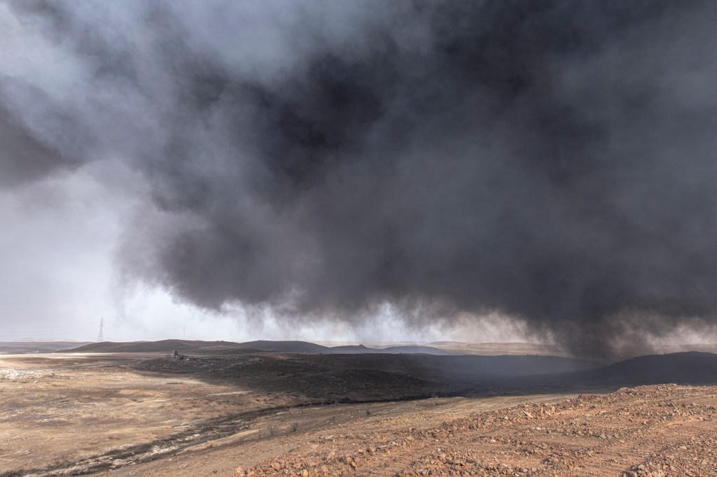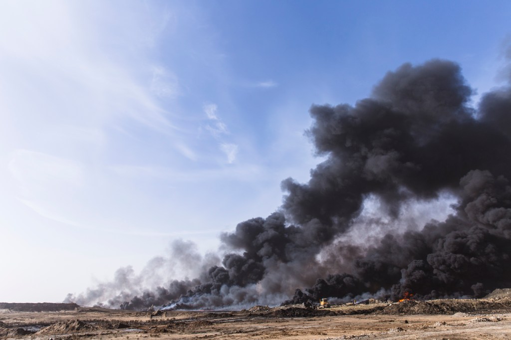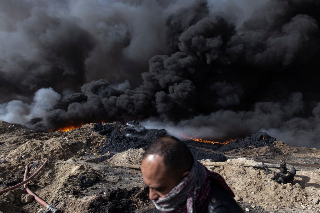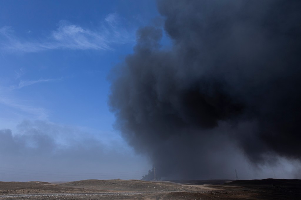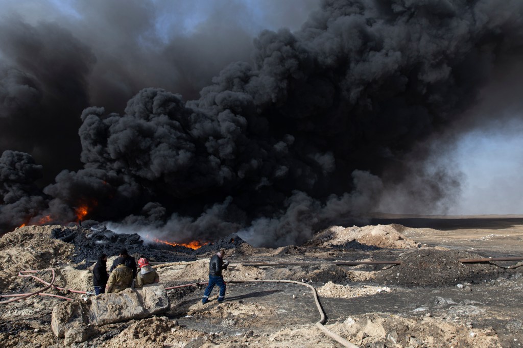 Retreating from an incoming coalition of Iraqi and Peshmerga forces, Daesh set fire to oil fields in Al Qayyarah Iraq, the main source of income for the town. It is understood the fires were ignited to prevent an incoming airforce from tracking them and to hamper future use of it.